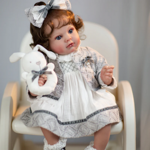 Delight in the charm of our realistic baby doll, crafted to inspire nurturing play and cherished keepsakes. This adorable little girl features a vinyl head, hands, and feet paired with a soft cloth body for the perfect balance of lifelike detail and cuddliness.