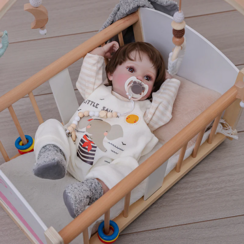 This doll arrives with a wooden bead pacifier clip, pacifier, personalized birth certificate, and a premium gift box—perfect for gifting or display.